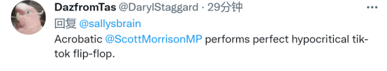 “雜技演員莫里森在TikTok上反轉,完美地表演了偽善。” 還有人諷刺認為,中澳關係緊張下,莫里森政府“終於”找到了“突破口”。↓