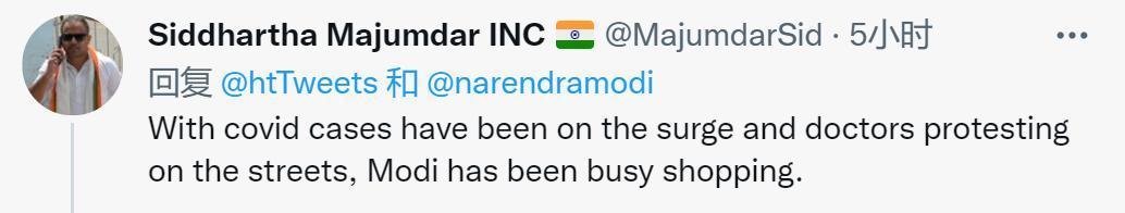 “隨著新冠肺炎病例激增,醫生上街抗議,莫迪卻一直忙著購物。”