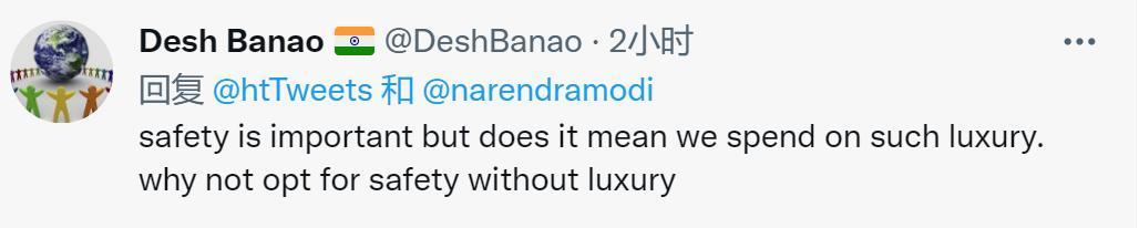 “安全很重要,但這是否意味著我們要花錢購買這樣的奢侈品。為什麽不選擇不奢華的安全。” 還有人稱:“曼莫漢(印度前總理辛格)沒有升級瓦傑帕伊(2018年過世的印度前總理)留給他的寶馬7系汽車。在他擔任印度總理的整個任期內,他都在使用這輛車。而莫迪先是擁有了路虎,現在又是價值1.2億盧布的奔馳邁巴赫。” ↓