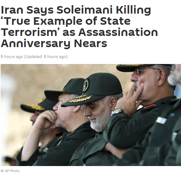 報道截圖 “美國暗殺蘇萊曼尼的行動是恐怖襲擊和國家恐怖主義的真實例子,是由美國政府組織、唐納德·特朗普設計和下令實施的。”哈提蔔紮德在周一的新聞發布會上說。 這位發言人補充說:“美國政府對這一令人發指的行為負有國際責任,伊朗將不會停止采取行動,直到將這次恐怖主義行動的肇事者和策劃者繩之以法。” 哈提蔔紮德強調,美國決定殺害蘇萊曼尼,無視或者正是因為這名指揮官在整個中東地區打擊恐怖主義中扮演的角色,凸顯了華盛頓關於反恐戰爭的“雙重標準”和“謊言”。 這位發言人還說,謀殺蘇萊曼尼不僅是對人權和國際法的侵犯,也是針對伊拉克主權的“侵略行為”。 2020年1月3日,蘇萊曼尼在伊拉克巴格達國際機場附近遭美國無人機襲擊身亡,襲擊的命令是由時任美國總統特朗普下達的,當時特朗普的助手告訴他,這名伊朗指揮官對2019年12月伊拉克民兵組織對美國在基爾庫克的軍事設施發動的致命火箭彈襲擊負責,該襲擊導致一名美國承包商死亡,4名美國士兵受傷。美方還將2019年伊拉克抗議者試圖圍攻美國駐巴格達大使館的事件歸咎於蘇萊曼尼和伊拉克民兵組織。 而伊拉克情報部門後來得出結論指出,基爾庫克的那次襲擊很可能是“伊斯蘭國”恐怖組織所為,而不是蘇萊曼尼或伊拉克民兵組織所為。特朗普政府隨後數次改變了殺害蘇萊曼尼的理由,先是聲稱他對該地區的美國軍隊和大使館構成了“迫在眉睫的威脅”,但隨後又承認,並沒有任何具體情報指向任何具體的陰謀。後來,特朗普又聲稱,索萊馬尼被殺的部分原因是他在“說美國的壞話”,是一個“知名的恐怖分子”。 伊朗威脅要起訴特朗普和其他涉嫌參與暗殺蘇萊曼尼的人員,並於2020年6月對特朗普發出逮捕令,並請求國際刑警組織協助引渡他。伊拉克緊隨其後,巴格達調查法庭於2021年1月發布了對特朗普的逮捕令。 國際刑警組織拒絕了伊朗的請求,理由是該組織被禁止從事“任何政治、軍事、宗教或種族性質的幹預或活動”。 除了特朗普外,伊朗還懷疑包括一家英國安全公司以及以色列在內的其他參與者參與了這起謀殺。上個星期,以色列前軍事情報局局長塔米爾·海曼(Tamir Hayman)史無前例地承認以色列參與了這次暗殺行動,並稱贊這是一項“成就”。 【編輯:俞丹鳳】