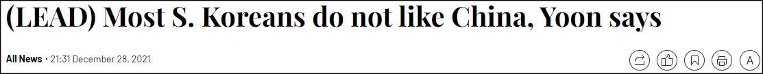 韓總統候選人稱:現政府親華,民眾卻對華反感12月28日,韓國下屆總統的熱門人選之一、韓國最大在野黨國民力量黨候選人尹錫悅參加了駐韓美國商會舉辦的一場座談會。這位一貫反對文在寅的政客此次把矛頭對準了韓國政府的對華政策,聲稱文在寅在外交上“傾向中國”只會導致韓國民眾的反感。 據韓聯社28日報道,在被問及韓國出口總額中對華出口占比達25%、韓國對“特定國家”的依賴度可能增加時,尹錫悅將問題歸咎於文在寅政府,稱其“親華政策”反而讓韓國多數年輕人“反感中國”。他鼓吹在“韓美日協作”的基礎上開展對華外交。