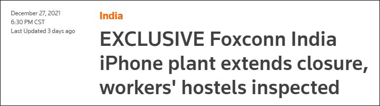 抗議現場 目前,該涉事工廠已被關閉。富士康已為不符衛生標準致歉,並承諾改組在印度的管理和營運。法新社則稱,蘋果公司表示,富士康斯利柏倫菩德廠將處在觀察期,直到蘋果滿意一切符合公司標準為止。富士康未明確表示打算何時重新開廠。 蘋果公司發言人說:“近期富士康斯利柏倫菩德廠的食安和住宿條件出現疑慮後,我們派出獨立稽查人員。我們發現,若幹偏遠員工宿舍和餐廳並未符合我們的要求。我們正在跟供應商合作,以確保能快速執行全面改正行動。” 工廠所在的泰米爾納德邦(Tamil Madu)政府25日則稱,富士康同意擴大住宿區域、升級沐浴設備、提供飲用水和答應員工要求,很快就會恢復營運。據路透社27日報道,當地官員稱,原本計劃1月3日恢復運營,現在延長至了1月6日。 事實上,這已經不是蘋果的印度代工廠第一次爆發工人抗議了。2020年12月,緯創資通旗下一家印度工廠因為欠薪等問題,爆發了抗議,工人們砸爛了設備和車輛,造成的損失估計達6000萬美元。 據路透社報道,自2017年來,蘋果開始在印度組裝iphone,代工廠富士康、緯創資通(Wistron),以及和碩(Pegatron)共同承諾在五年內投入約9億美元,在印度生產iPhone手機。 【編輯:俞丹鳳】