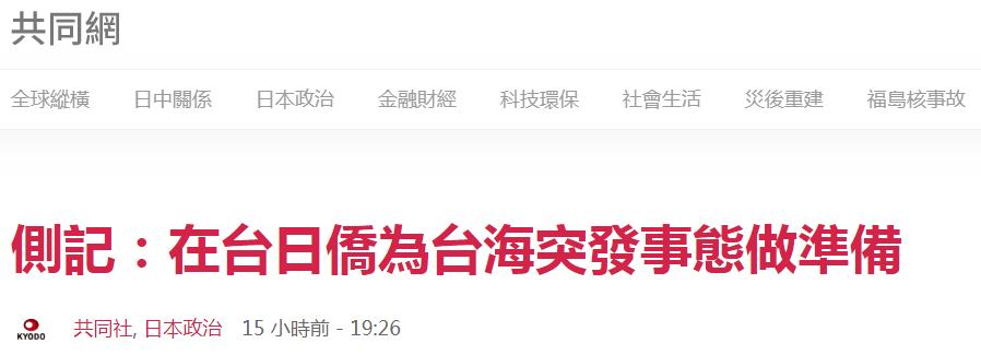 一段時間來,日本一些政客不斷渲染台海“緊張局勢”,為日本擴充軍力找藉口。一些日媒也始終不消停,不時渲染炒作。 日本共同社29日聲稱,在美國和台灣高官紛紛擔心中國大陸或武力統一台灣之際,在台日僑也開始為台海“突發事態”做準備。雖然日本政府宣稱僑民保護“將力爭萬無一失”,但因為日本與台灣沒有“外事關係”,撤僑行動也將受制約。日資企業和民間的日僑團體以“責任自負”為前提,已開始自行采取對策。