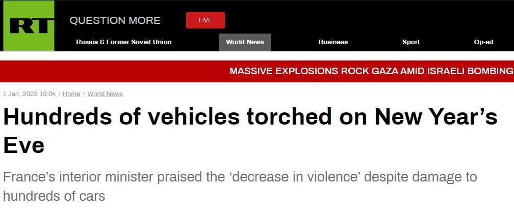RT報道截圖 報道稱,達爾馬寧在推特上對該國警方和相關安全部門人員表達感謝,稱他們幫助“減少了暴力事件(的發生)”。 不過,報道稱,盡管安全部門作出了努力,但還是有數百輛汽車被縱火燒毀,對此他表示,這一數字低於2019年,當時有1300多輛汽車被燒毀。