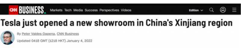 香港新聞網1月5日電 CNN又來挑事了,這次它盯上了特斯拉(Tesla),起因是該公司在中國新疆新開設了一家展廳。 “特斯拉剛剛在中國新疆地區開設了一個新展廳”,CNN(美國有線電視新聞網)4日報道的標題乍看沒什麼特別之處,但文中卻藏著其在新疆問題上一如既往的偏見和對在當地正常經營的外企施壓的壞心思。