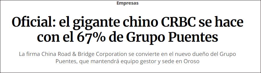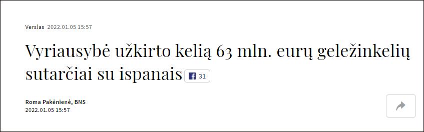 BNS報道截圖 立陶宛總理希莫尼特發言人5日向波羅的海通訊社(BNS)證實,政府決定阻止國營企業“立陶宛鐵路公司”(LTG)與一家西班牙橋梁建築商Puentes y Calzadas Infraestructuras簽署合約。 該發言人聲稱,政府已經認定“立陶宛鐵路公司”與這家西班牙建築商的協議“不符合國家安全利益”。 Puentes y Calzadas是一家全球性的工程、基礎設施和建築施工公司,在美國、非洲、亞洲、歐洲等地都有項目。去年6月,中國路橋工程有限責任公司(CRBC,簡稱中國路橋)從西班牙企業Grupo Puentes收購其擁有的Puentes y Calzadas三分之二股份。 目前,Puentes y Calzadas建築公司網站上將中國路橋列為母公司(parent company)。