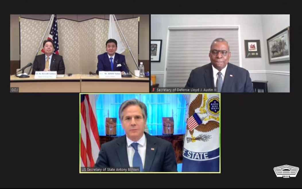 美日“2+2”視頻會議截圖 北京時間1月7日上午,美國國務卿布林肯、國防部長奧斯汀與日本外相林芳正、防衛相岸信夫在線舉行“2+2”視頻會議,這是岸田文雄就任日本首相以來兩國外交和防衛領域最高級別官員的首次會談。 會後,日美雙方發表聯合聲明。根據美國國防部網站公布的內容,兩國重申致力於構建自由開放的“印太”地區,並決心通過全面協調戰略和優先目標,不斷實現聯盟現代化,以應對不斷變化的安全挑戰。 聯合聲明再次渲染所謂的“中國威脅”,對中國在東海和南海的活動表示關切,還提及新疆和台海相關問題。 對此,中國駐日本使館發言人1月7日指出,日美外長防長“2+2”會議及聯合聲明惡意操弄涉華議題,對中國進行無端指責,粗暴干涉中國內政,嚴重違反國際法和國際關係基本準則。中方對此表示強烈不滿和堅決反對,已提出嚴正交涉。 簽軍備協定應對高超音速導彈 在7日的會談上,日美雙方重點聚焦防衛領域合作。據路透社報道,布林肯強調,為應對來自中國、俄羅斯、朝鮮方面所謂的威脅,美日同盟不僅要強化現有的裝備,還必須開發新的防衛裝備。 兩天前(1月5日),朝鮮國防科學院剛剛進行了高超音速導彈試射,這是朝鮮繼去年9月底宣布首次試射“火星-8”型高超音速導彈之後,第二次宣布試射高超音速導彈。美聯社報道7日指出,日美越來越擔憂來自朝鮮方面的威脅,此次試射被認為是一個信號,表明平壤對重啟無核化談判不感興趣,將專注於強化武器庫。 日美聯合聲明稱,“面對危及地區戰略平衡的快速且不透明的軍事擴張,(日美)部長對大規模開發、部署核武器、彈道導彈、巡航導彈以及高超音速武器等先進武器係統表示擔憂。”兩國決定共同合作研究如何對抗高超音速技術。 日美“2+2”會議結束後,雙方簽署了防衛裝備合作研究協定,重點應對周邊國家推進開發的高超音速導彈等新型武器。 值得注意的是,在此前一天,日本與澳大利亞剛達成一項防衛合作協議。澳大利亞總理莫里森1月6日與日本首相岸田文雄舉行視頻會晤,簽署了有關日本自衛隊和澳軍聯合訓練和應對災害的《互惠準入協定》(RAA)。共同社稱,日本將澳大利亞視作“準同盟國”,著眼於中國軍力擴大,日澳將在安全領域加強合作。 根據RAA,日澳部隊聯合訓練時可簡化攜帶武器入境的程序和海關手續,將使兩國間互派部隊變得更加便捷,推進雙方安全合作。 日本在防衛領域動作頻頻,日方在“2+2”會議上再次表明“徹底強化防衛力量”的決心,明確“探討國家防衛所需的一切選項”,包括對導彈的應對能力。 駐日美軍之憂 為尋求深化日美防務合作,布林肯在7日的會議上表示,兩國將簽署一項新的5年協議,共同分擔駐日美軍費用。 在特朗普政府時期,日美在軍費分攤問題上的分歧難解,直到去年年末,兩國達成共識,日本在一定程度上滿足美方的漲價要求,日本每年將花費約18.2億美元來支持美國的軍事存在,協議將持續到2026年。 據美聯社報道,美國目前在日本部署約55000名士兵,包括一支海軍特遣隊,這使其成為美國最大規模的海外駐軍。布林肯在會上指出,新的軍費分攤協議將提高兩國共同作戰的能力。 此外,美日“2+2”會談還議及新冠疫情。近日,日本疫情再次出現反彈趨勢。由於駐日美軍無視防疫措施活動,導致沖繩疫情擴散,引發民怨。據日本廣播協會(NHK)消息,1月7日沖繩報告新增病例超千例,刷新疫情暴發以來的最高值。 “美軍中感染者再次激增,防疫對策和管理體制不完善,讓人感到非常憤怒。”沖繩知事玉城丹尼2日在記者會上怒斥美軍散播病毒,要求修改給予美軍特權地位的《日美地位協定》。 針對駐日美軍的防疫漏洞,日方在7日的會議上提出,為了消除沖繩居民的不安情緒,強烈要求在日美軍加強防疫措施,限制外出。對此,美方表示“希望盡可能應對”。 【編輯:李雪萍】