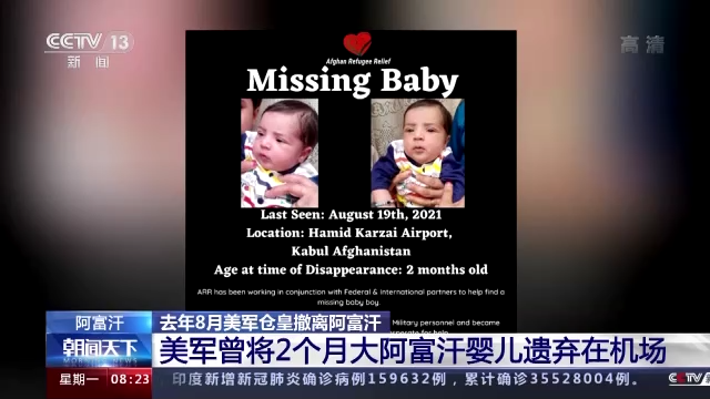 去年8月,阿富汗塔利班進入喀布爾,美軍倉皇撤離,喀布爾國際機場持續多天混亂不堪。8月19日,一對阿富汗夫婦在隨美軍撤離時,混亂之下將只有2個月大的兒子托付給一名美軍士兵,但這名男嬰從此下落不明。很多人都以為,這個嬰兒“應該是已經被美軍帶到了美國”。 但是據最新報道,這個嬰兒其實是被美軍遺棄在了喀布爾機場。幸運的是,孩子被一名阿富汗出租車司機領養,他也在8日被送回到了在阿富汗的親屬家中。 這個嬰兒名叫蘇海爾·艾哈邁迪,他的父親阿里·艾哈邁迪曾在美國駐阿富汗大使館當安保人員。去年8月19日,阿里·艾哈邁迪一家在隨美軍撤離時,因擔心才2個月大的蘇海爾在混亂中遭遇踩踏,就把孩托付給了一名美國士兵。他們以為這樣一來孩子會提前到達機場入口,但當他們越過機場圍欄後,就再也找不到蘇海爾了。