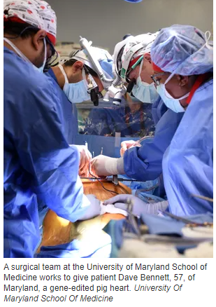 外媒報道截圖 這名美國男子名叫大衛·貝內特,現年57歲。其主治醫生說,手術在美國巴爾的摩進行,時長7小時,目前病患狀況良好。外媒稱,移植手術中使用的豬已經過基因改造,但貝內特接下來的情況未知。貝內特的兒子也稱,目前一切處於未知狀態。