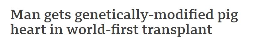 綜合《今日美國》、美國廣播公司等外媒10日消息,一名美國男子成為全球首位從轉基因豬身上接受心臟移植的人。