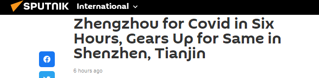 疫情下的中國速度,再次讓外媒驚訝。 俄羅斯衛星通訊社11日刊文稱,中國中部河南省省會鄭州7日發現少數新冠確診病例後,這個擁有 1250 萬人口的城市啟動了全員核酸檢測。僅6個小時後,他們就完成了檢測,達到每小時約 210 萬人或者說每秒 583 人的檢測速度。報道特意提到,鄭州市的人口相當於紐約市和芝加哥市的總和。