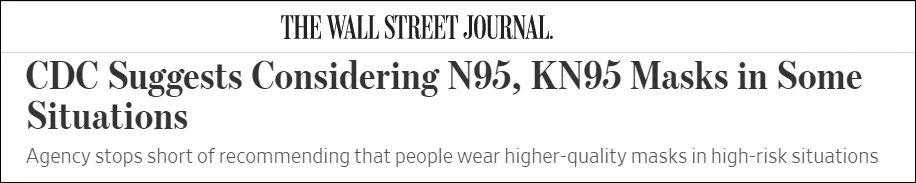 《華爾街日報》報道截圖 綜合《華爾街日報》、美國全國廣播公司(NBC)等美媒報道,美國疾控中心在其更新的指南中表示,民眾可以選擇N95和KN95等型號的口罩,並消除了外界對N95口罩供應不足的擔憂。 美疾控中心表示,呼吸器(即N95或KN95等級別的口罩)適用於照顧新冠患者,以及患嚴重疾病風險更高的人,例如免疫功能低下的人群、老年人和患有某些潛在疾病的人。此外,從事公共服務的人群,或是無法保持社交距離和無法接種疫苗的人群,也可以考慮使用呼吸器。 不過NBC指出,更新的口罩指南中,疾控中心並沒有強制要求民眾一定要選擇某種特定類型口罩或不用某種口罩。該機構表示,不管戴什麽口罩,都比不戴口罩要好,有些口罩提供防護水平高於其他口罩,但也可能比其他口罩更難以讓人保持長期佩戴,“最重要的是正確佩戴合適的口罩或呼吸器,讓自己舒適的同時,提供良好的保護。” 美國疾控中心主任瓦倫斯基12日也表示,該機構不會改變其口罩指南,但會更新內容以幫助美國人選擇適合自己的口罩,“最好的口罩是妳能夠佩戴,且能夠忍受在公共場所和室內環境下佩戴一整天的口罩。” 即便如此,新更新的指南依舊對各類口罩進行了詳細說明:“松散編織的布口罩提供最差保護;多層精細編織布口罩稍微好點;一次性醫用口罩及KN95口罩提供更好保護,受美國國家職業安全衛生研究所(NIOSH)認證的N95等口罩提供最好保護。” 此次更新不同在於兩點。 首先,此前由於供應不足等問題,美國疾控中心並不建議普通民眾佩戴N95或KN95口罩。其次,美國CDC在此前的更新中,僅對“受國際認可”的KN95進行了介紹,並聲稱“美國市面上60%KN95口罩都是假冒偽劣產品”,並未提及佩戴KN95口罩的保護力度,而在特定工作場合,佩戴的優先級也應是“美國官方認證”先於“國際認證”。
