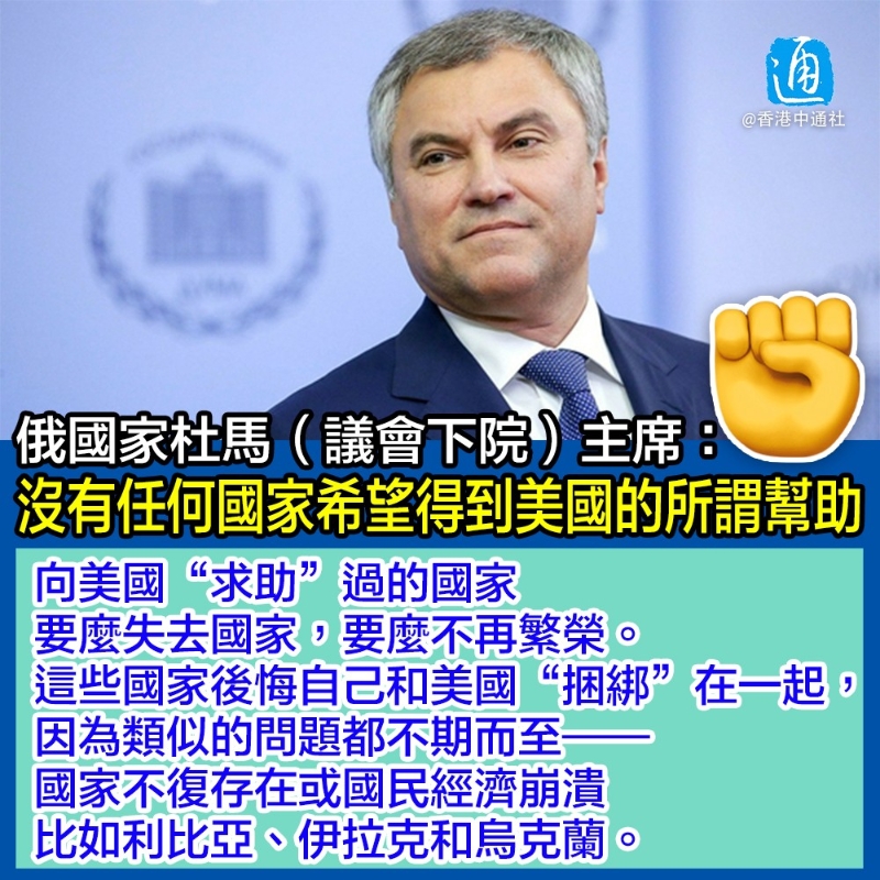 俄國家杜馬主席:沒有任何國家希望得到美國的所謂“幫助”