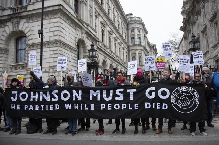 倫敦市民在首相辦公室外舉橫幅抗議“約翰遜必須下台” 圖自外媒 對此,英國保守黨主席道登(Oliver Dowden)宣佈,約翰遜將致力於改變政府的酒文化。道登轉述約翰遜的話稱,他“真心地感到後悔”。 但道登說,現在要求約翰遜下台是錯誤的,民眾不希望看到候選人們爭奪首相的位置。 16日,英國《衛報》發文稱,約翰遜下台已經成為“時間問題”(a question of when)。