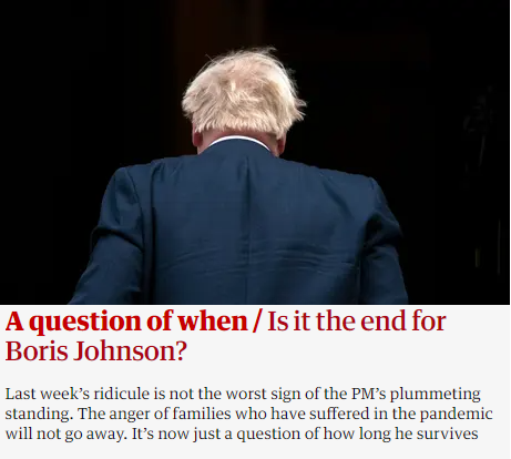 約翰遜因“派對醜聞”遭黨內外逼宮,英媒稱兩周內下台可能性大雖然英國首相約翰遜已就“派對門”醜聞致歉,但事態依舊沒有平息。黨外對他猛烈批判不必說,甚至黨內多名資深議員要求他辭職,以免影響5月的地方選舉。最近民調顯示,保守黨支持率已落後主要反對黨工黨10%,創歷史新低,約翰遜個人支持率也跌至冰點。 約翰遜遲來的道歉無濟於事,因為在英媒的深挖下,唐寧街10號的“酒文化”逐漸浮出水面。在整個疫情期間,首相府每周五都要開派對,飲酒作樂(wine time Friday),倫敦“封城”和菲利普親王葬禮期間也概莫能外。約翰遜不僅屢次三番參加,還鼓勵員工參加聚會“釋放壓力”。 據英媒爆料,在這個“最危險的時刻”,約翰遜已擬定了一個計劃,開除一批官員以自保。他自己給這個計劃命名為“拯救大狗行動”(Operation Save Big Dog)。《赫芬頓郵報》無情諷刺道,很顯然,約翰遜給自己取了個新名字,但在政治對手和社交媒體的緊逼之下,這只狗似乎要和他的狗窩說再見了(appeared to be out of the kennel )。 英國老牌媒體《衛報》16日分析稱,約翰遜下台只是“時間問題”,幾種可能中,“兩周內被迫辭職”的可能性最大。