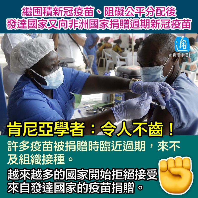 肯尼亞首都調頻網站當地時間16日發表學者卡文斯的評論文章,譴責發達國家在支持非洲抗擊新冠疫情上言行不一,繼囤積新冠疫苗、阻礙公平分配後,又向非洲國家捐贈過期新冠疫苗。反觀中國,同非洲合作實施聯合疫苗生產計劃,不僅增加非洲獲得疫苗的機會,同時加強非洲工業能力和衛生系統建設。
