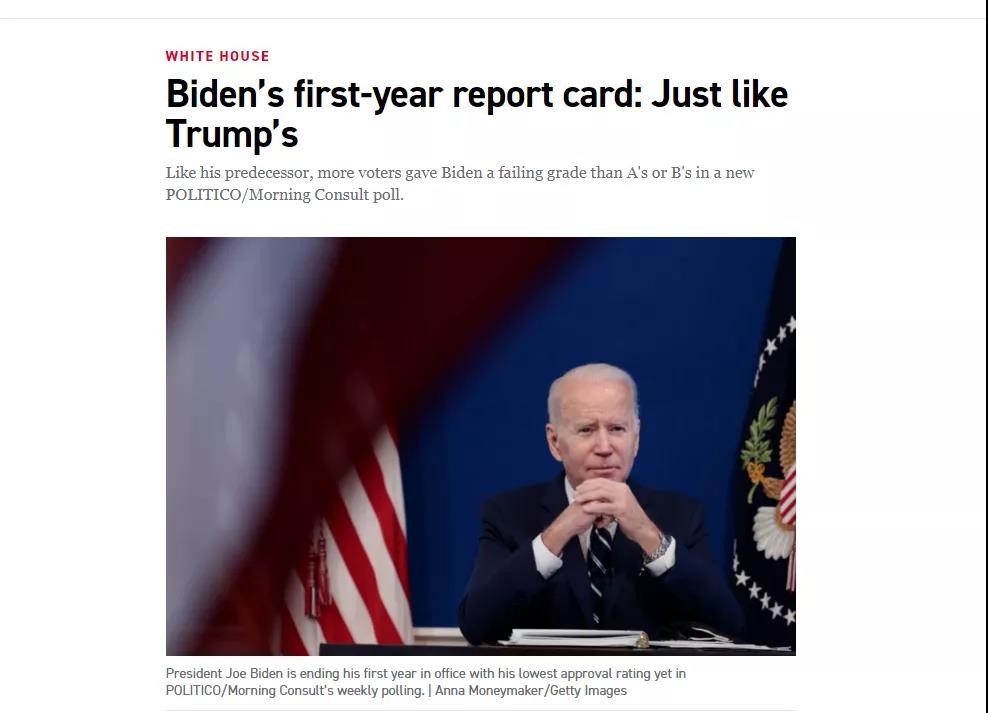 香港新聞網1月20日電 盡管美國總統拜登將自己定位在前總統特朗普的對立面,但隨著執政第一年結束,卻有高達37%的民眾對他的施政成績打分不及格;甚至,與特朗普執政第一年相比較,拜登獲得的施政評價更低。