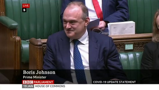 香港新聞網1月21日電 一場“派對門”事件,讓鮑里斯·約翰遜的英國首相之位岌岌可危。連日來,他遭遇各方“逼宮下台”的壓力,即便是同黨盟友也沒有放過他。不過,當地時間1月19日,他在英國議會被議員當面要求辭職時,卻發生了莫名其妙的一幕。 根據英國廣播公司(BBC)19日發佈在社交媒體推特上的一段視頻:英國自由民主黨領導人埃德·戴維(Ed Davey)當天在英國議會下議院指責約翰遜說,鑒於之前的派對醜聞,約翰遜已不再適合為他人制定新冠防疫政策,“打敗新冠最好的政策,就是讓他(約翰遜)辭職”。