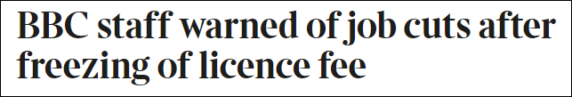 《泰晤士報》報道截圖 蒂姆·戴維表示:“我將直言不諱地說——我們將稍微減少一些這里的人員,然後在正確的地方、合適地使用資金。” 之後他又補充道:“在BBC公共服務部門,我們不會再增加人手。我認為我們很可能會稍微縮減一下員工規模。” 此前,英國政府為緩解通脹下國民經濟壓力,已要求BBC將現在收取的159英鎊年許可費延續兩年,期間不許加價。政府還考慮在2024年至2027年將收費漲幅限制在通脹率以下,最終自2027年後完全取消收費,轉向其他的融資渠道。 報道稱,員工們聽到蒂姆·戴維的講話後,感到“心煩意亂、挫敗和沮喪”。其中一名員工哀嘆,公司從未陷入如此糟糕的情況。