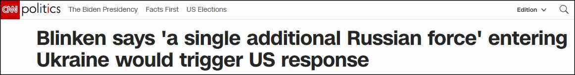 CNN報道截圖 “制裁的目的是阻止俄羅斯的‘侵略’。”布林肯稱,“如果它們現在被觸發,就會失去威懾作用。我們現在所做的任何事情,包括團結歐洲、計劃對俄制裁,甚至同時尋求外交途徑解決,都是考慮了普京總統的算計,借此威懾和勸阻他們不要採取激進行動。” 但布林肯也重申“美國的立場”,強調如果俄羅斯軍隊以所謂“侵略性方式”進入烏克蘭,美國及其歐洲盟友將對此做出“迅速、嚴厲且一致的回應”。 這番發言被視作是對拜登政府決策的辯護。 1月19日,烏克蘭總統澤連斯基接受美國《華盛頓郵報》採訪時稱,等到“局勢升級”後再制裁俄羅斯根本“無法幫助烏克蘭”,他呼籲美國立即對俄羅斯實施制裁。 “我支持現在立即制裁。我曾問過一位領導人,你為什麽支持在俄羅斯‘入侵’烏克蘭之後再發起對俄制裁?等我們失去烏克蘭全部領土之後再發起制裁,還有什麽用處?”澤連斯基說。但CNN指出,拜登政府顯然沒有理會澤連斯基的請求,拒絕“先發制人”進行制裁。 然而,隨著美國等西方國家與俄羅斯的安全對話陷入僵局,美國政界高層對於如何應對烏克蘭局勢變化已產生明顯的分歧。 美國國會參議院軍事委員會共和黨籍成員喬尼·恩斯特23日接受CNN採訪時稱,美國需要通過制裁來向俄羅斯表明態度,“我們要向俄羅斯表明,如果他們‘入侵’烏克蘭,我們不會袖手旁觀,你無法再回頭了。所以這些制裁必須現在立即實施。” 國會眾議院外交事務委員會主席、共和黨人邁克爾·麥考爾隨後也響應恩斯特的言論,在接受美國哥倫比亞廣播公司(CBS)採訪時宣稱,立即實施對俄制裁“不會讓美國喪失威懾能力”,美國可以在“成功阻止俄羅斯的不當行為後”再取消制裁。 民主黨人雖然支持拜登政府的外交政策,但一些議員也開始鼓吹對俄“強硬”。美國會參議院外交關係委員會成員、民主黨人克裏斯·庫恩斯稱,美國需要保留“最嚴厲的制裁”作為威懾手段,但應考慮根據兩黨法案先實施部分制裁措施。 美國總統拜登此前還曾在烏克蘭問題上“失言”。他在19日的新聞發布會上稱,與“全面入侵”相比,俄羅斯對烏克蘭的“小規模入侵”可能會引起西方“較小的反應”。這番發言一度讓烏克蘭“大驚失色”,澤連斯基20日專程發推提醒美國,不存在“小規模入侵”。 為安撫烏克蘭的情緒,美國白宮很快站出來幫拜登“滅火”。白宮新聞發言人普薩基強調,拜登已向俄方明確表示,任何軍隊越過邊境進入烏克蘭都屬於“侵略行為”,將導致嚴重的經濟後果。拜登本人也在同一天澄清立場,稱俄羅斯“入侵”烏克蘭將面臨“嚴厲、協調一致的經濟回應”。 借著對所謂俄羅斯“威脅”的炒作,美國正積極向烏克蘭提供軍事裝備。美國提供的第一批武器已於21日抵烏,包括約90.7噸致命武器。當地時間23日,烏克蘭國防部長阿列克謝·列茲尼科夫又在社交媒體發文稱,美國向烏克蘭提供的第二批武器也已抵烏,這批80多噸的武器將加強烏克蘭的作戰能力。 與此同時,美國國務院23日還發布了針對烏克蘭的旅行警告,並要求美國駐烏克蘭大使館本周開始撤離非必要工作人員及其家屬、敦促在烏美國公民離境。有消息人士透露,美國已將相關計劃通知烏克蘭方面,但澤連斯基對此極為不滿,指責美國“反應過度”。 俄羅斯已多次否認西方所謂“入侵烏克蘭”的指控,強調俄羅斯沒有威脅任何人,也不打算進攻任何國家。據俄羅斯衛星通訊社報道,俄外交部此前批評稱,西方有關“俄羅斯侵略”的言論既可笑又危險,相關說法只是西方在俄羅斯邊界附近部署更多北約軍事裝備的借口。 【編輯:李雪萍】