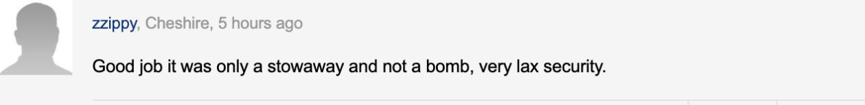 也有網友表示,機場的安保工作存在漏洞:“還好只是個偷渡者,不是炸彈(攜帶者),安保太松懈了。” ↓