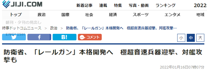 《日本經濟新聞》、時事通訊社等日媒輪番炒作“電磁炮”