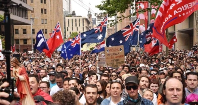 澳大利亞堪培拉約萬人參加反疫苗示威分享到: