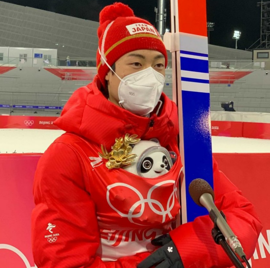 例如,在推文貼出的照片中,跳台滑雪男子個人大跳台項目銀牌得主、日本運動員小林陵侑將冰墩墩揣在懷里。