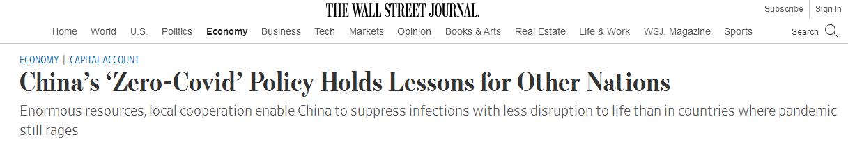 美媒罕見刊文:中國“動態清零”政策對其他國家有借鑒意義“中國‘(動態)清零’政策對其他國家有借鑒意義”,美國《華爾街日報》當地時間16日罕見刊文肯定中國防疫政策,儘管文章裡一些內容還是帶有西方媒體對中國的傳統偏見和“有色眼鏡”,但文章也承認:西方人很難心平氣和地看待中國的抗疫政策,而這種態度容易使人忽視中國“動態清零”政策所取得的成就,以及其他國家、包括那些所謂“民主國家”能够從中借鑒些什麼。