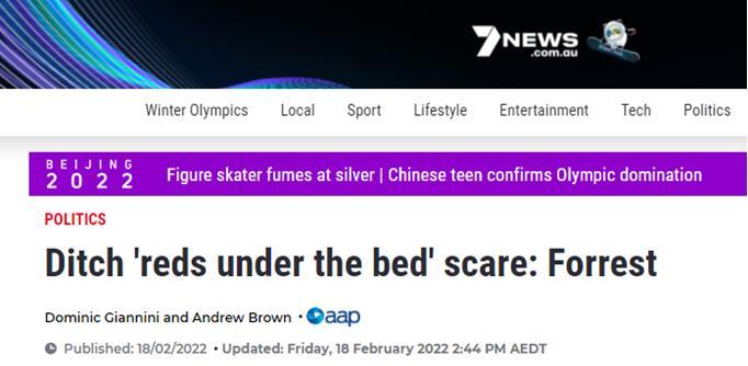 福布斯網站顯示,目前位列全球富豪榜87位的安德魯·福雷斯特,在21世紀初創辦了福蒂斯丘金屬有限公司集團,和中國有著密切的貿易往來。此外,2020年全球新冠疫情暴發之初,他曾接受中國媒體采訪,談到疫情發生後一些政客對中國的指責。他表示:“那些花時間去指責別人的政客們,說明他們沒有在關心自己國家的人民以及控制疫情方面花足够的時間。” 18日講話上,福雷斯特再次就澳政壇生態發表自己的看法。報道稱,他指責這讓人聯想到“藏在床下的赤色分子”(“reds under the bed”,意指冷戰時期對共產主義的非理性恐懼)。他稱,當前澳政壇一些政客關於中國的言論已然處於這種恐慌之下,應該摒棄這種恐慌。 “我們的這些所謂威脅反反復復。我父母在上世紀50年代曾對我說——北美要買下整個國家了,然後把它併入加州。然後日本人來了,(當時)看起來我們都要搬去東京。我已經目睹了這些過程的反反復復,”福雷斯特說道。 隨後他總結稱,“我只是想對政界人士說:冷靜下來,我們生活在世界上最好的國家,而且——順便說一下——它周圍有一條偉大的護城河,有點難以進攻,還有一大堆胸部毛茸茸的朋友。”