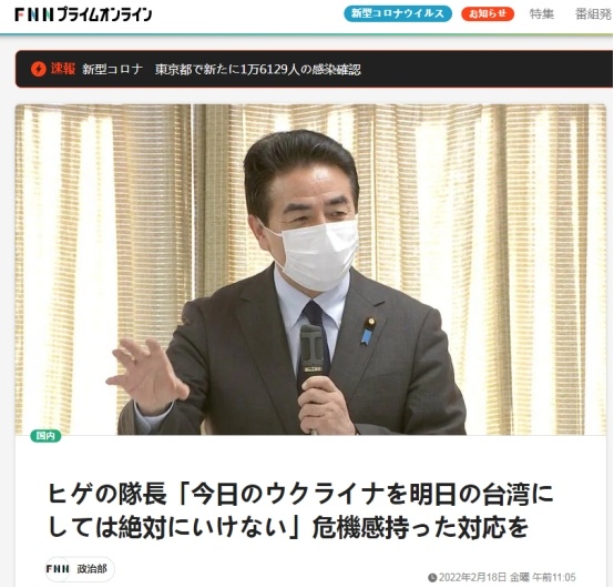 近期,針對烏克蘭局勢,日本政府跟隨以美國為首的西方勢力采取一連串動作,而在執政黨自民黨內部,有人企圖借烏克蘭局勢加劇台海緊張。 日本自民黨外交部會會長佐藤正久18日假藉烏克蘭局勢炒作台灣問題,聲稱“絕對不能讓明天的台灣出現今天的烏克蘭這種情況”,宣稱需要讓七國集團理解,烏克蘭問題和台灣問題“在本質上相同”。