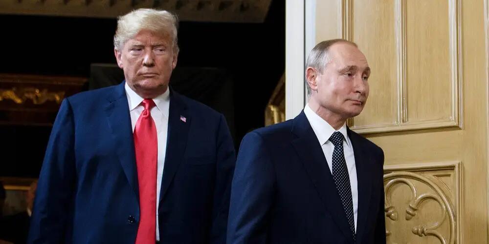 特朗普和普京於 2018 年 7 月會面時的照片,“商業內幕”報道配圖 特朗普稱,我昨天看著電視屏幕,“我說,‘這真是天才’。普京宣佈烏克蘭的很大一部分地區“獨立”。哦,這真是太棒了。”當他被問到這條新聞時,特朗普還稱:“我說,‘這得有多聰明啊?’他將派軍去烏克蘭,做和平衛士。”