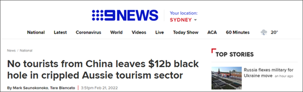 (9News報道截圖) 21日,邊境管控近兩年的澳大利亞首次重開國門,允許國際游客來澳。而就在外界期盼澳大利亞旅游業回春之際,澳大利亞媒體第九新聞(9News)發文稱,因為“沒有中國游客,會給陷入困境的澳大利亞旅游業留下120億澳元的黑洞”。在推特上,這篇報道標題則直白地寫道“為何澳大利亞旅游業哭喊著要中國游客回歸”。 據報道,根據2月份的航班需求,全球旅游網站Expedia在21日公佈了飛往澳大利亞的國際入境航班的十大來源國家及地區。其中,預定航班最多的是美國游客,英國和加拿大游客分別位居第二、第三,而以往赴澳旅游人數頗多的中國卻沒有出現在這一排名內。 另一方面,據報道稱,在新冠疫情暴發前,中國游客佔到澳大利亞所有游客的近三分之一,他們是迄今為止最大的消費群,在該國各地的城市和旅游熱點地區慷慨解囊。 另外,澳大利亞旅游與交通論壇(Tourism and Transport Forum,TFF)提供的數據也能證明,中國游客對澳大利亞旅游業的重要性。據報道,TFF的數據顯示,在2019年,140萬中國游客在澳消費了122億澳元,超過了所有國際游客消費總數的1/4。 但受疫情影響,澳大利亞從2020年3月開始實施嚴格邊境管控,絕大部分出入境航班停飛,僅允許少量獲得特別許可的境外訪客入境。因此,在2021年,根據TFF的數據,中國游客在澳的巨額消費出現斷崖式下跌,僅有7600萬澳元。 據觀察者網報道稱,TTF首席執行長瑪吉·奧斯蒙德(Margy Osmond)表示,自從澳大利亞關閉邊境以來,該國的旅游業每月損失約達40億澳元。同時,旅游業的困境也讓酒店、洗衣店和汽車租賃等行業受到影響。奧斯蒙德形容,在過去兩年里,澳大利亞失去了整整一代人的旅游業從業人員。# 【編輯:李彥洲】