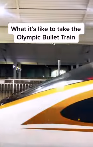 在這段時長25秒的視頻中,米勒先是對著鏡頭拋出一個問題——“乘坐冬奧列車是一種什麼樣的體驗?”隨後跟隨隊友登上列車。在真切感受到“中國速度”後,米勒不禁驚嘆:“這趟自動駕駛列車一度跑出了349公里/小時的時速!” 米勒還稱:“通常,乘坐汽車從北京到張家口需要3小時,而乘坐冬奧列車卻只需56分鐘。”她在視頻配文也感慨道:“又快又穩!!”