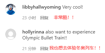 網友留言截圖 視頻引發眾多網友點贊與互動,有網友留言表示:“非常酷!!”也有網友稱:“我也想去體驗冬奧列車。” 【編輯:俞丹鳳】