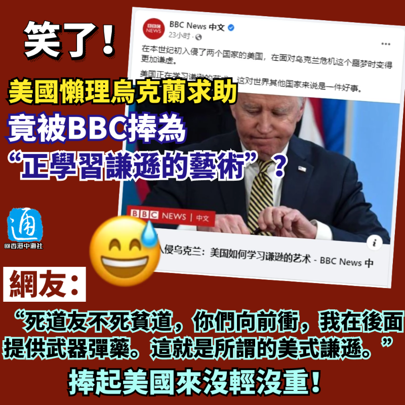 笑了!美國懶理烏克蘭求助,竟被BBC捧為 “正學習謙遜的藝術”?分享到: