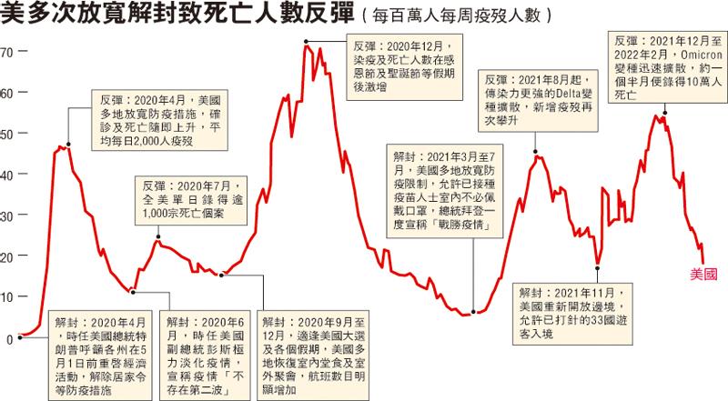 未汲取教訓 抗疫如應對槍擊案 在消極抗疫情緒下,美國社會甚至有聲音嘗試用車禍和意外事故等不可控因素對照染疫死亡,試圖為疫歿人數劃定“可以承受”的心理底線。衞生政策專家薩洛曼估算,疾病控制與預防中心(CDC)最新防疫指引指出,死亡率達到每百萬人中3人疫歿、即全美單日至少1,000人染疫去世,才需考慮收緊防疫措施,“白宮和CDC似乎都願意接受這種死亡率,不再加強呼籲防護,實在令人心碎。” 哥倫比亞大學教育學院健康教育教授拉詹擔憂按此趨勢,未來美國社會恐對疫歿漠不關心,更不會再努力防疫,最大限度減少疫情損失。正如美國每年約有4萬人死於槍擊,但槍支氾濫問題常年不見改善一樣。 拉詹強調一場奪取百萬人性命的疫情,應為美國社會帶來更多教訓:改善公共場所通風、擴大醫保覆蓋範圍、保證藥物和疫苗公平供應,關心社會弱勢群體,這些措施都能挽救更多生命。但如果與過去兩年一樣消極防疫,沒有真正保障民生福祉,應對日後的大流行,美國也只能承受同樣損失慘重的結局。 接種計劃沒防疫措施配合 疫情反彈打擊民眾打針意願 美國是全球最早提供新冠疫苗加強劑的國家之一,但當地加強劑接種率一直停滯不前。美媒分析指出,總統拜登政府將接種疫苗視作成功抗疫的最佳方式,卻沒有相應措施配合防疫,導致疫情多次反彈,民眾也逐漸對防疫失去信心。不少已接種疫苗的民眾眼見打針後染疫的“突破感染”個案日增,更不願相信加強劑效用。 哈佛大學FXB健康與人權中心流行病學家費爾德曼指出,美國允許所有成年人接種疫苗僅數周後,醫學界還未確認大規模打針產生的效用,疾病控制與預防中心(CDC)便匆匆修訂指引,不再建議已打針人士在室內公共場所戴口罩。白宮其後更放棄立法要求企業為員工提供防疫保障,包括戴口罩及定期檢測等。結果隨着Delta變種病毒蔓延,美國疫情迅速反彈,許多民眾“打針即可有效規避染疫風險”的想法也隨之落空。 政府卸責歸咎未接種人士 美國近期民調也顯示,約四成至少接種一劑疫苗的民眾都不願再接種加強劑,當中約22%受訪者認為Omicron變種重症率極低,根本無需以加強劑應對,另有約19%受訪者則認為已打針人士依然會感染,接種加強劑對防疫根本無效。 費爾德曼還認為,聯邦政府不斷嘗試利用“疫情是未打針人群的流行病”等說法,試圖將疫情反彈完全歸咎於未完成接種人士。實際上沒有足夠防疫措施配合,美國疫情隨時有反彈風險,聯邦政府只是借助類似說法,試圖逃避防疫失當責任。