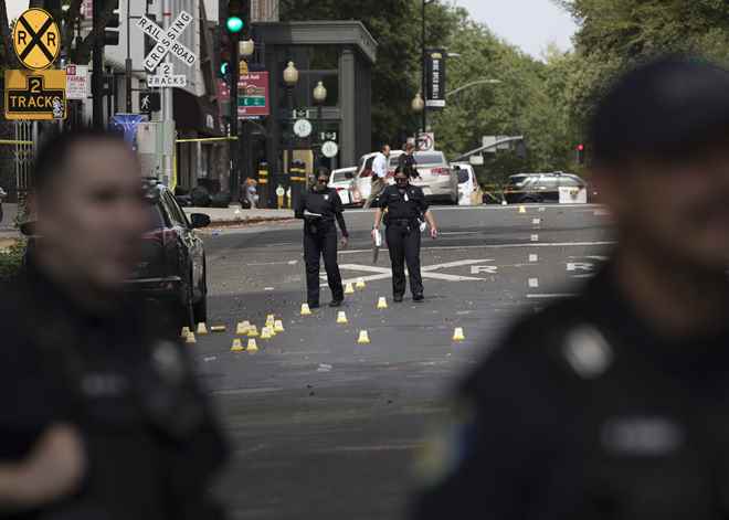 事發地。 香港中通社圖片 根據警方發佈的消息,26歲的丹德雷·馬丁(Dandre Martin)被認定為相關嫌疑人,並被指控暴力襲擊和非法持有槍支。但沒透露他的犯案詳情,亦沒談到警方是否還在搜捕其他疑犯。 當地時間4月3日,薩克拉門托市警察局表示,發生在當日清晨的大規模槍擊案已造成6人死亡、12人受傷,有多名槍手參與作案。 警方指出,槍擊案發生在當日凌晨2時左右,死者包括3名女性,3名男性。警方說,槍擊案發生前曾發生大規模打鬥,警方同時在現場找到過百枚彈殼和一支手槍。 發佈在社交媒體上的視頻顯示,案發現場人們四處逃竄,視頻背景中可以聽到70餘聲槍響,多輛救護車被派往現場。 據報道,當地時間4月3日,美國總統拜登對加州大規模槍擊事件發表聲明說,國會必須對槍支問題採取行動,包括禁止黑市槍支買賣、對所有槍支銷售進行背景調查等。 據統計,今年以來,槍支暴力已在美國造成至少10806人死亡,其中未成年人398人;另有8558人受槍傷,其中未成年人937人。(完) 【編輯:李雪萍】