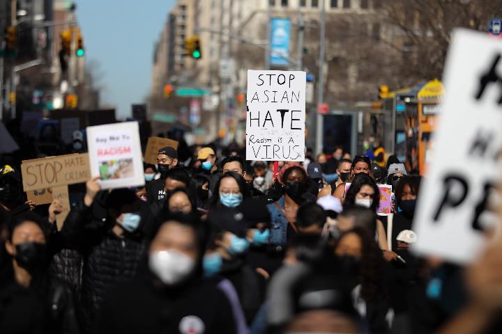 2021年3月21日,在美國紐約,人們集會抗議針對亞裔的歧視行為和仇恨犯罪。圖源:新華社 報告指出,美國亞裔正在遭受愈演愈烈的種族主義攻擊。新冠肺炎疫情這場嚴重的公共衛生危機,為檢視美國社會種族歧視問題提供了一個直觀透明的窗口。非洲裔與拉美裔成為美國疫情的直接受害者,他們的感染率和死亡率要遠高於白人群體;而亞裔則不幸淪為美國疫情的間接受害者,他們是伴隨著疫情而日益猖獗的種族歧視言行的主要攻擊目標。 報告援引加州州立大學聖貝納迪諾分校“仇恨與極端主義研究中心”的統計數據顯示,2020年美國整體仇恨犯罪案件較2019年下降了7%,然而針對亞裔的仇恨犯罪卻激增149%。2021年第一季度美國15個大城市針對亞裔美國人的暴力犯罪相比2020年同一時期增長了169%。 報告系統論述亞裔從歷史延續到現在的種族歧視遭遇,深刻揭示了反亞裔種族歧視甚囂塵上的原因,包括美國政客對疫情的種族主義操弄、美國白人至上的種族結構與社會氛圍、亞裔“模範少數族裔”標簽的羈絆、美國種族關係的對立、美國政客破壞中美關係的政治誘因。 【編輯:馬華】