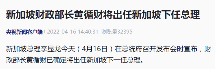 “無論如何,我們的計劃是若行動黨能贏得下屆大選,就由黃循財擔任總理,這件事已經決定好了。” 新加坡總理李顯龍今天(4月16日)在總統府召開發布會時宣布,財政部長黃循財已確定將出任新加坡下一任總理。