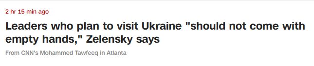據美國有線電視新聞網(CNN)報道,烏克蘭總統澤連斯基當地時間4月23日表示,計劃訪問烏克蘭的(外國)領導人“不應該空著手來”。