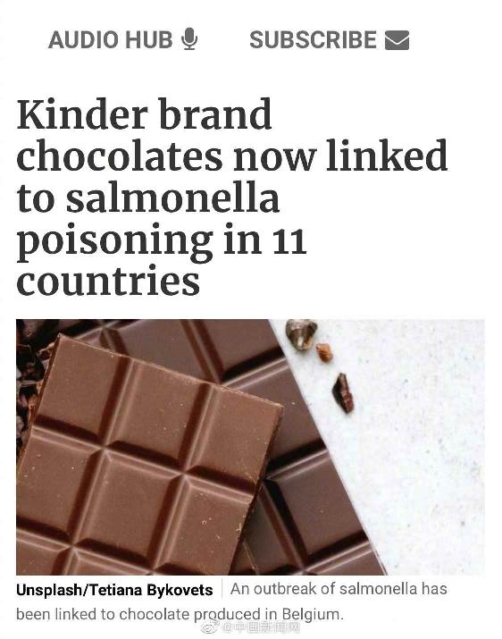 世衛:受沙門氏菌污染的巧克力在多國導致病例分享到: