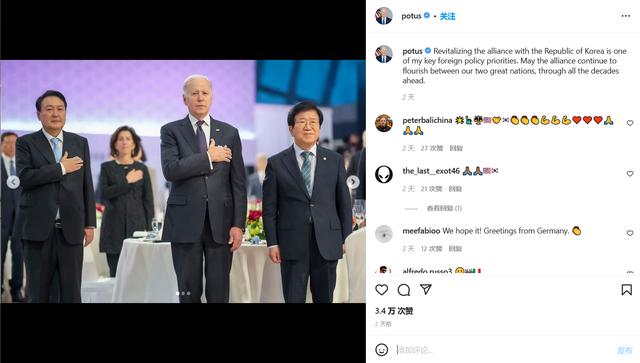 拜登社交媒體截圖 韓國Edaily新聞網稱,韓國網民對尹錫悅學美國人向美國國旗“致敬”的做法惡評如潮,大家紛紛表示:“演奏韓國國歌時,拜登為什麼不致敬?”“訪問中國時,韓國總統向五星紅旗致敬了嗎?”還有網友挖出李明博、朴槿惠時期類似場景,均未發現他們向別國國旗“致敬”的情況。 此外,此次招待拜登的韓國國宴中,少了“獨島大蝦”這一菜式(“獨島”為韓日爭議島嶼,日本稱其為“竹島”)。對此,日本《產經新聞》評論稱,作為重視韓美日合作的尹錫悅政府而言,這才是“正常的待客之道”。不過,《韓國經濟》表示,美方並未就其公開表態,只有日本右翼非常高興。 韓國政府的做法略顯“尷尬”。韓國網友也紛紛留言道:“支持國宴繼續上‘獨島大蝦’”“尹錫悅政府過度親日嗎?”“是因為‘獨島大蝦’很珍貴才用來招待客人,怎麼能說它會招致外界爭議呢?” 不僅如此,拜登首見尹錫悅時脫口而出“文總統”,以及拜登保鏢打人等事件,都在韓國引發不小爭議。 據悉,拜登訪韓先遣隊的一名保鏢於當地時間19日晚在某酒店附近對一名韓國男性施暴,並在事發後第二日立即被遣返回美,因而難以斷案。對此,韓國國內有聲音稱,美媒報道了韓媒才報,是“連吱聲都不敢的屈辱”。(完) 【編輯:李彥洲】