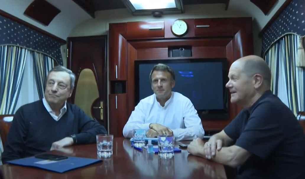 (自左到右)意大利總理德拉吉、法國總統馬克龍和德國總理朔爾茨。視頻截圖 據報道,馬克龍15日在羅馬尼亞發表講話稱,“我們正處於需要向烏克蘭及其人民發出明確政治信號的時刻,我們歐洲人正在英勇抵抗。” 烏克蘭媒體也對此次訪問進行了報道,並稱這次訪問與歐盟委員會是否授予烏克蘭歐盟候選國地位的關鍵決定有關。 烏克蘭總統澤連斯基於2月簽署申請加入歐盟的文件。5月9日,澤連斯基宣佈,烏方已提交申請歐盟候選國地位調查問卷第二部分答覆文本。歐盟表示將於6月就調查問卷有關內容做出結論。 針對德國、意大利和法國領導人訪問基輔,俄羅斯聯邦委員會(議會上院)副主席科薩切夫15日在社交媒體上表示,德國、意大利和法國領導人即將訪問基輔的目的是:向烏克蘭提供進一步的軍事和經濟援助,向西方出口烏克蘭糧食等歐洲所需的商品,討論烏克蘭加入歐盟的前景。如果此次訪問“按照這一事先寫好的劇本”進行,只會將烏克蘭進一步推向“民族災難”,而不是幫助烏克蘭成為真正的歐洲國家。(完) 【編輯:李雪萍】