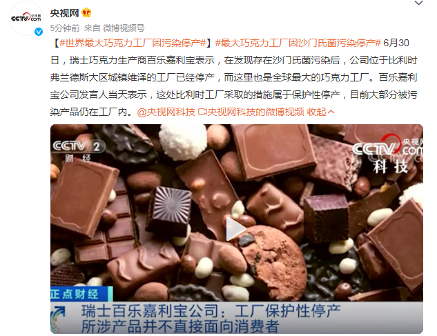 香港新聞網7月1日電 當地時間6月30日,瑞士巧克力生產商百樂嘉利寶表示,在發現存在沙門氏菌污染後,公司位於比利時弗蘭德斯大區城鎮維澤的工廠已經停產,而這裡也是全球最大的巧克力工廠。