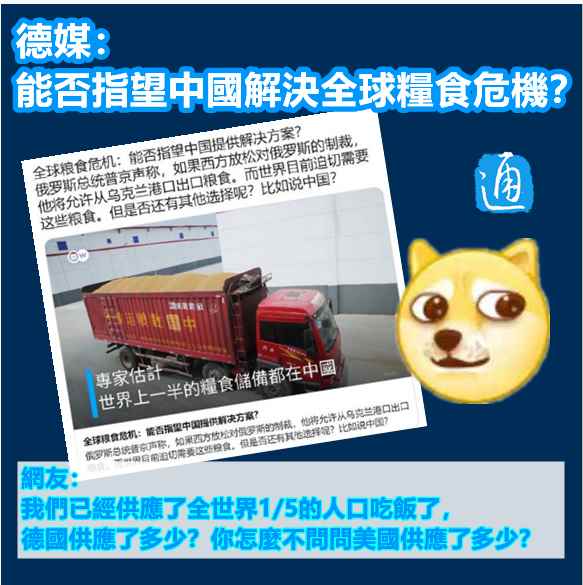 香港新聞網製圖 昨天(7日),有德國媒體在其推特上發佈了一個題為《全球糧食危機:能否指望中國提供解決方案?》的視頻,並配文道:“俄羅斯總統普京聲稱,如果西方放鬆對俄羅斯的制裁,他將允許從烏克蘭港口出口糧食。而世界目前迫切需要這些糧食。”文末直問:“但是否還有其他選擇呢?比如說中國?” 在視頻中,該媒體更赤裸地指:“(德國)專家估計世界上一半的糧食儲備都在中國,如果北京釋放這些糧食儲備,就能彌補因為烏克蘭出口下降而造成的大部分短缺,從而避免世界饑荒的威脅。但到目前為止,中國並未對此開口。” 該媒體還專門“請”了一名德國農業專家專門論證“中國小氣”。此專家聲稱:“中國人非常依賴榖物和油菜籽的進口,所以這些儲備量對他們來說具有戰略意義,我們不能假設中方會提供。” 由於新冠疫情影響,極端氣候變化及西方制裁的衝擊,全球糧食價格一直維持高位。最新報告指,2021年全球受饑餓影響的人數已達8.28億,更有約3.45億饑民掙紮在死亡邊緣。 但是,俄烏衝突爆發後,美歐等西方國家就把全球糧食危機歸咎於俄羅斯,聲稱俄方應承擔此次危機的全部責任。中國也逃不過背“黑鍋”的命運。 事實上,德媒在向中國尋求解決糧食危機的藥方時,忽略了一個基本事實。正是在歐美攛掇下爆發的俄烏衝突引發了國際糧價飆漲,讓全球糧食危機情況雪上加霜。 烏克蘭素有“歐洲糧倉”之稱,是玉米和小麥出口大國。結果受俄烏衝突影響,今年烏克蘭的糧食產量有可能下降50%。 聯合國世界糧食計劃署稱人類或將面臨“二戰後最大的糧食危機”。聯合國秘書長古特雷斯也表示,俄烏衝突可能導致多達17億人口陷入貧困和饑餓。 再者說,中國能以一已之力養活全球1/5人口,這本身就是對全球糧食安全做出的最大貢獻。 中國目前是世界第一大糧食生產國,到2021年,中國糧食產量已經連續7年穩定在1.3萬億斤以上。對內,中國的榖物自給率超過95%。對外,中國還為保障世界糧食安全作出積極貢獻,是第三大糧食出口國。 反觀全球第一大糧食出口國美國,不但對產生危機的根源推波助瀾,甚至在糧食危機下還宣佈將繼續推進生物燃料的生產,將寶貴的糧食優先用作燃料。 對於德國媒體發佈的推文,大批網友反問道:“我們已經供應了全世界1/5的人口吃飯了,還要怎麽樣?德國供應了多少?你怎麽不問問美國供應了多少?” 【編輯:胡雪石】