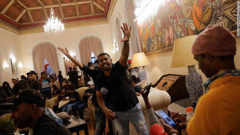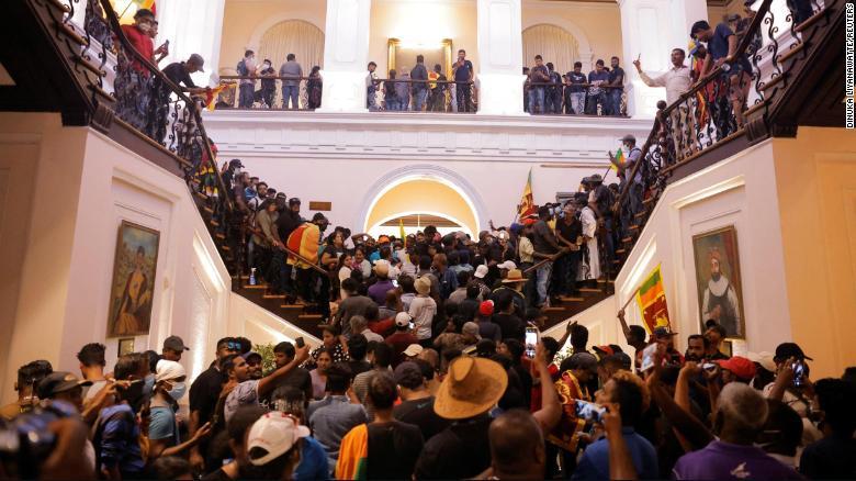 大批示威者闖入總統官邸 社交媒體畫面顯示,大批示威者身披斯里蘭卡國旗,闖入總統官邸的各個大小房間,同時呼喊要求總統下台的口號。有示威者躺在辦公室的沙發上……