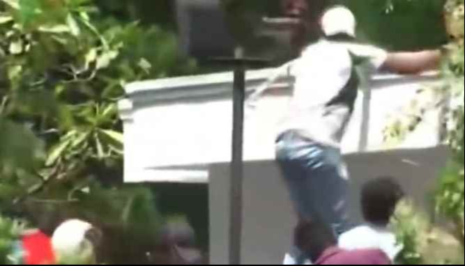 斯里蘭卡民眾街頭抗議。圖自外媒、社交媒體等 一些示威者更是衝破警方防線,衝進總統拉賈帕克薩的官邸。據當地電視台和示威者拍攝的畫面顯示,超過10萬人聚集在拉賈帕克薩的官邸外,要求他辭職。總統官邸前,大批駐守的軍警朝天開槍示警,但示威者依舊衝破防線,一路衝入官邸。