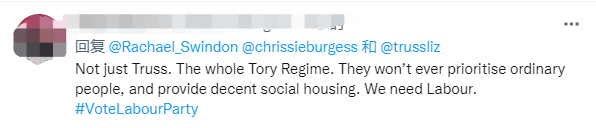 有網友則理性分析稱:“這不是特拉斯一個人的問題,而是整個保守黨都有問題。”並舉例如普通民眾的住房等問題永遠不在他們的優先考慮範圍內……