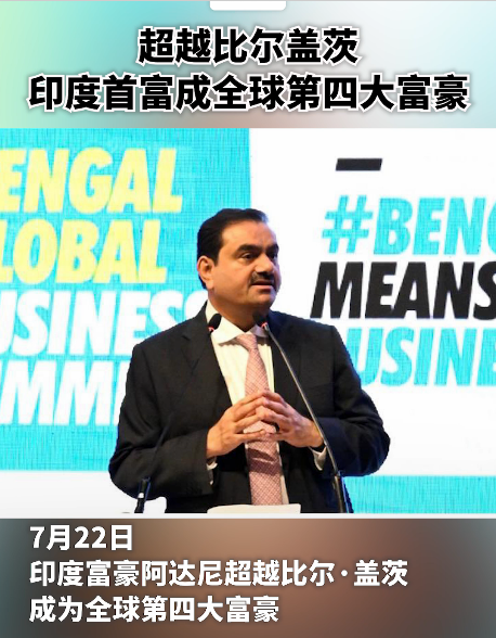 印度首富阿達尼超越比爾蓋茨,成全球第四大富豪分享到: